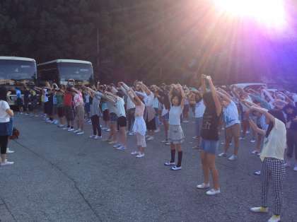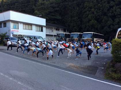 曲は、スポーツフェスタの準備体操です。日光らしいアレンジが