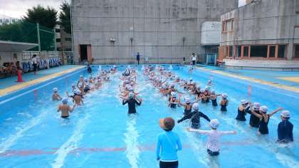 只今、二年生はプール納めをしています。今年頑張ったことの振り返りや来年頑張りたいことを考えながら、最後のプールを楽しんでます。