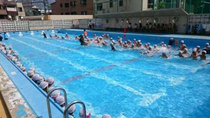 最後の検定も行っています。みんな一生懸命泳いでいます。