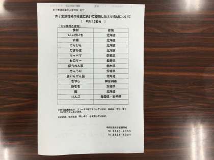 今日は、パインパンと鮭のマヨネーズ焼き、田舎風豆スープ、ほうれん草のサラダです。「主な食材と産地」を見ると、13品目中6品目が北海道産でした。北海道の農産物が、台風の影響で打撃を受けているのが気になりますね。