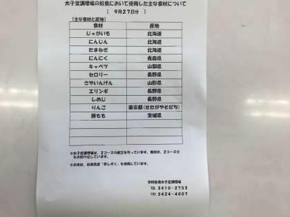 9/27 今日の給食