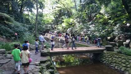次は、等々力渓谷です。ここの場所は一歩足を踏み入れると、大きな道路や町の賑やかさから突然目の前に緑が広がります。等々力不動尊では、銀杏がたくさん落ちていて、ここでも匂いを感じました。
