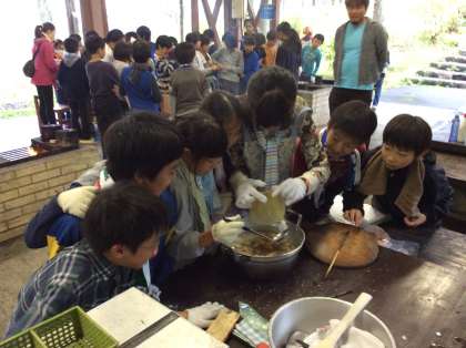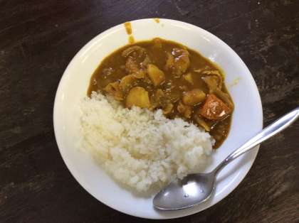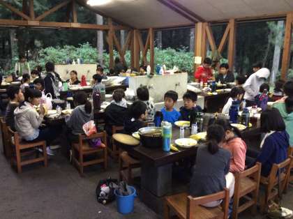 そろそろごちそうさまの時間です。いろいろなカレーが出来上がりました。私は、全部の班の カレーを味見させてもらいました。満腹です。