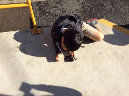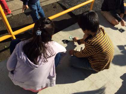 光の明るさや紙の焦げ方に違いがあるのかどうかなどを調べています。