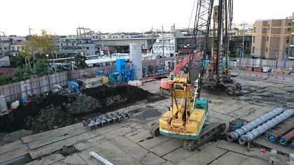 土を掘り出す作業や杭を打ち込む作業が行われていました。