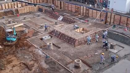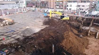 形枠が組まれてコンクリートが流し込まれています。建物の下地は、何だか発掘現場のようにも見えます。3枚目の写真は、大井さんに提供していただきました。