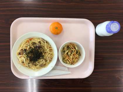 今日は冬至ですね。夕食にかぼちゃを食べる家庭が多いと思います。私の故郷では、かぼちゃを小豆と一緒に煮て、とても甘くして食べます。さて、今日の給食は、きのこスパゲティ、じゃがいものパリパリサラダ、みかん、牛乳です。私は和風スパゲティが大好きです。納豆や明太子も美味しいと思いますが、きのこスパゲティが大好物です。しめじの食感がたまらく良いですね。今年の給食は今日で終わりです。年末年始は飲み過ぎ食べ過ぎに気をつけて、元気に過ごしてください。良いお年をお迎えください。