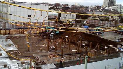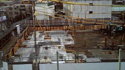 2グラ側の電気設備に黄色いシールドが張られています。基礎工事が続いてます。写真を大井さんより提供していただきました。