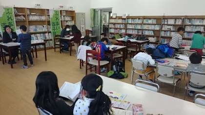ふれあい寺子屋山の塾が、開かれました。今日は、2年生です。学校協議会の皆さんに教科「日本語」の暗唱を聞いていただいたり、思い思いのプリントやドリルに取り組んだりしました。