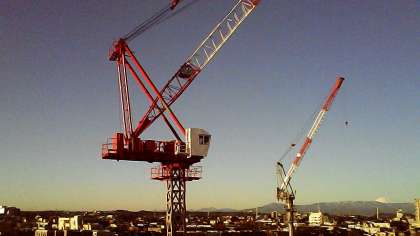 骨組みが進んでいます。遠くに富士山が見えます。写真を大井さんに提供していただきました。