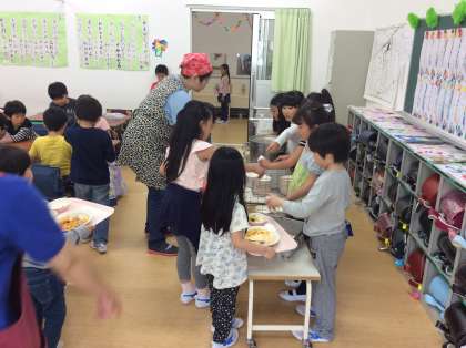 山野小でのはじめての給食は、スパゲッティミートソースでした。