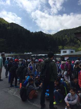 高尾山の麓までバスで来ました。風が寒いぐらいです。これから登ります。