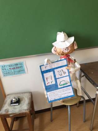 今朝は第二仮設三階の図工室前からお送りします。2年生が、学校探検用に作った掲示物もお出迎えです。呼び鈴を鳴らすと15秒以内に先生が出て来るというのは愉快ですね。今週は連休の谷間の二日間です。短いけれど、頑張りましょう!