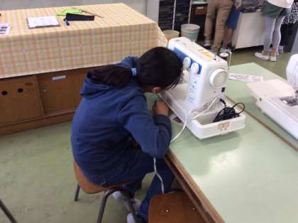 家庭科では、マイバッグを作成しています。