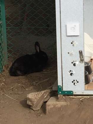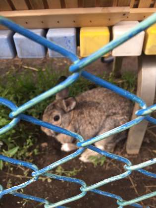 今日は6年生の遠足です。それなのに、6年生の飼育委員が朝早くからウサギの世話をしてくれています。さて、2匹の名前をご存じですか?