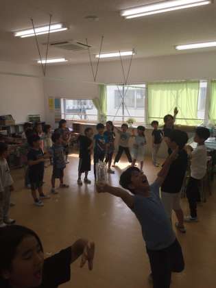 朝の時間に応援団が1、2、3年生の教室に入っての練習がありました。工夫と迫力が感じられます。