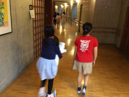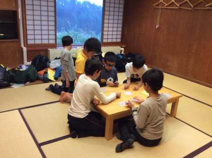 お風呂が終わった班は、部屋で遊んだり、シーツの準備をしたりしています。
