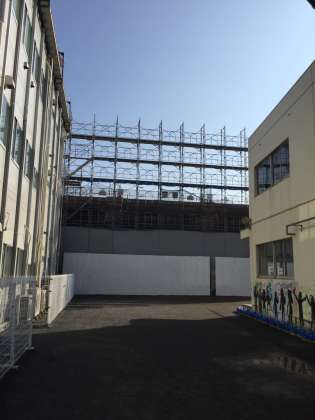 新校舎東部分の足場が昨日と今日の2日間で、高くなりつつあります。