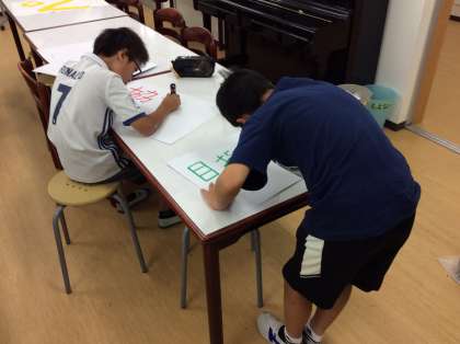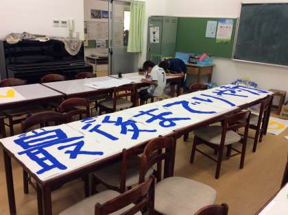 今朝も計画委員が横断幕づくりをがんばっています。
