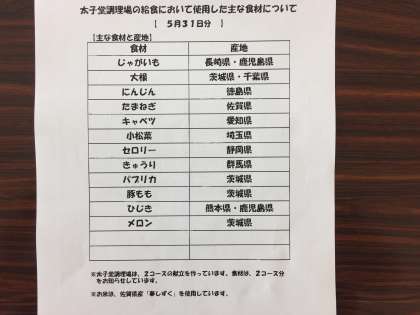 前から、給食のカレーは美味しいと思っていましたが、献立表の主な材料を見て納得しました。