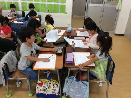 明日は、2年生の町探検です。友達と協力しながら、準備を進めています。