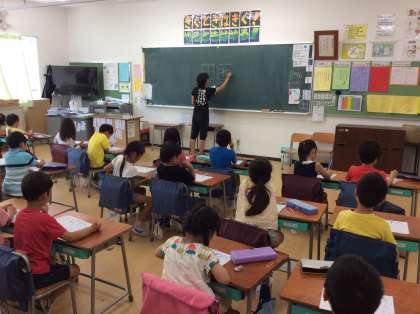山野小に入学して、初めての学校公開です。緊張しながらも一生懸命勉強しています。