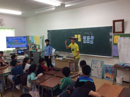 ゲストティーチャーを招いて、下水道の仕組みについて学習しています。テンポがよく、楽しい授業です。