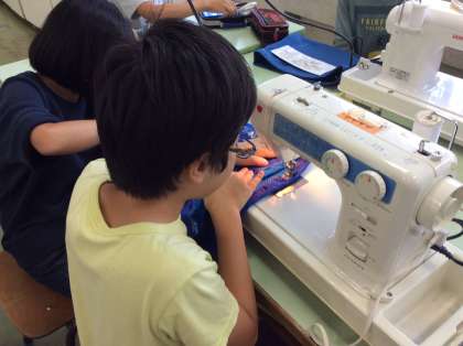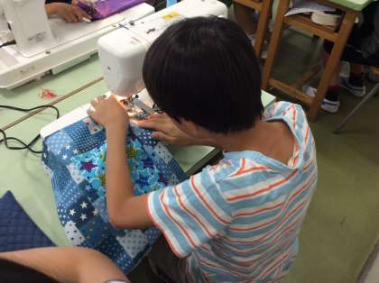 6年生は、マイバッグの製作中です。今日は、出入り口をミシンで縫っています。