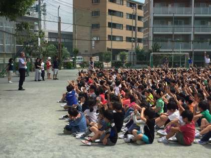 今日は理科室からの出火を想定して、第2校庭に避難しました。