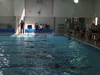 梅丘中の温水プールでの授業も今日で3回目です。外は気温も水温も高そうですが、室内は関係なく泳げるのがいいですね。ちなみに室温、水温ともに30度、水深は90?です。