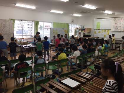 いろんな木の実。合奏の練習中です。
