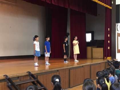 校長先生からは、42日間の夏休み、自分の命は自分で守ること、学校全体のために活躍した6年生に感謝しようというお話がありました。児童代表の言葉は3年生です。1学期に頑張ったことと、2学期に頑張りたいことを原稿なしで発表しました。