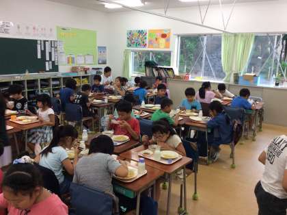 2学期最初の給食です。友達と食べるとやっぱり美味しいですね!