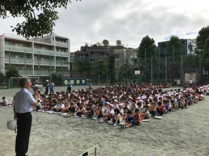 今月は強い地震が発生し、理科室から出火したという想定で、避難訓練を行いました。第二校庭では整然と行動していました。校舎内も同じようにできるといいですね。