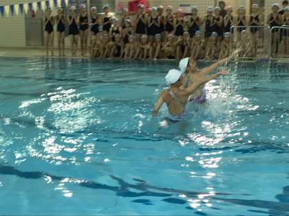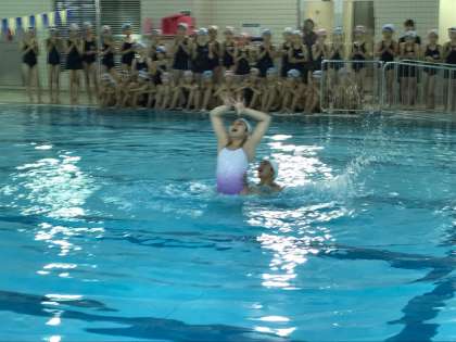 2学期は二回、梅丘中の温水プールをお借りして、学習します。今日はスペシャルゲストをお招きしました。国士舘大学シンクロナイズドスイミング部監督の足立夢実さんと、選手お二人です。