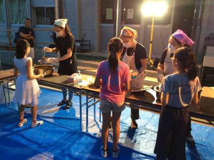 夕食の時間になりました。やまのキャンプ名物の豆カレーです。とっても美味しいです。
