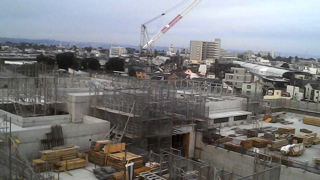 おはようございます。先週の末に小川さんからドローン撮影による工事現場の写真をいただきましたので、ご紹介します。屋上部分の工事が進んでいます。