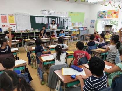 新しい担任の先生を歓迎する会を開く話し合いをしています。