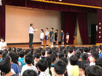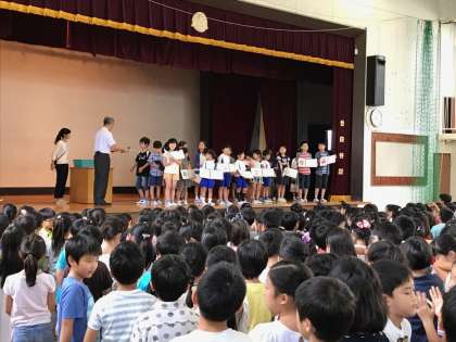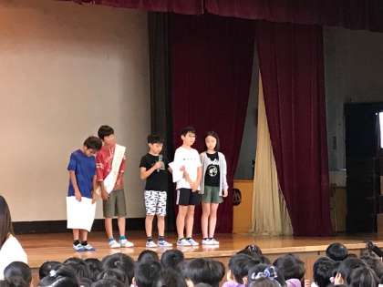 今日はバレーボールと歯のポスターで入賞した子どもたちの表彰がありました。計画代表委員会からは廊下を歩こう週間のPRがありました。