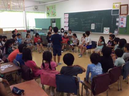 1年生から6年生までの縦割り班で、交流あそびを行いました。6年生のリーダーが中心となって交流を深めています。
