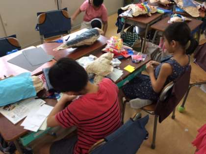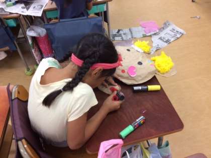 図工の時間です。ギュッとしたいわたしの「お友だち」を作っています。