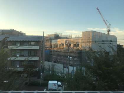 日の出の時刻が遅くなってきました。今朝は小田急線の車窓から見た新校舎の様子をお送りします。三階部分の窓が見えるようになりました。