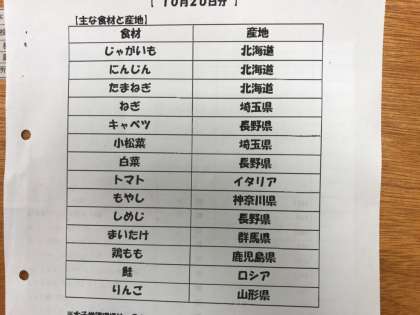 10/20 今日の給食