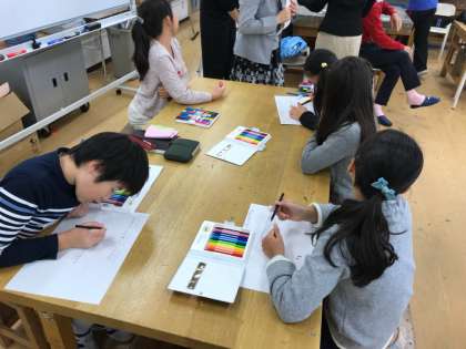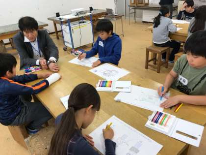 図工室では、4〜6年生対象に発明ワークショップを行いました。講師は、G-SHOCKを開発したカシオ計算機の開発部のお二方です。開発に向けてのエビゾードを聞いた後、自分たちも発明に向けての頭の準備体操をしました。物は誰かのために役立つために作られる、最初にその物を生み出すことが発明です。自分ならではの時計を考え、発明することに取り組みました。