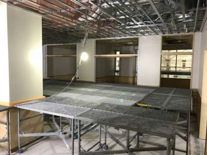 2階です。体育館は足場があるので割愛します。2階は普通教室以外にすまいるルームや図書室などがあります。図書室はデッキ付きです。