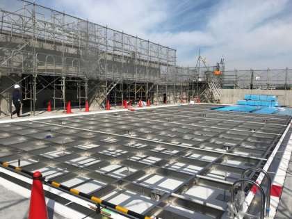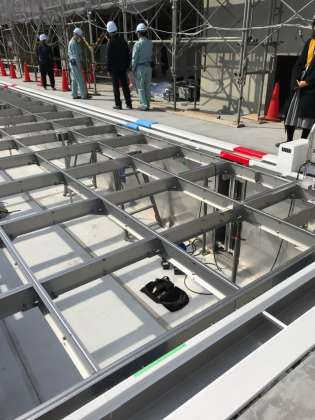 屋上プールです。床が可動式になっています。さらに学校の周囲をながめるスペースもあります。とにかくたくさんの部屋があり、改めて大きな建物であることが分かりました。いずれ、また詳しくご紹介します。