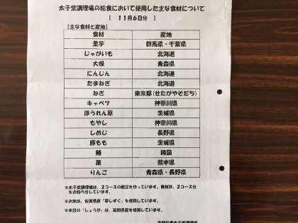 食材表の欄外に、「※本日の「しょうが」は、高知県産を使用しています。」と、あります。これは、山野小では明日になる「鯖のしょうが焼き」に使っているのでしょうけど、欄がいっぱいで入らなくて、しょうがなく欄外になったのでしょうが?