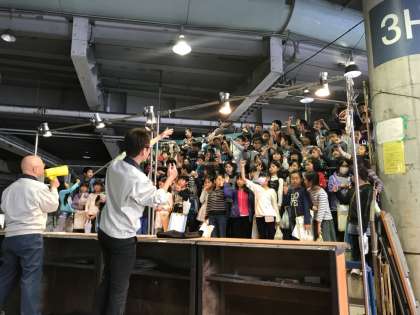 最後に果物のせりを体験しました。これから果物を食べる時に、今日の見学のことを思い出せるといいですね。