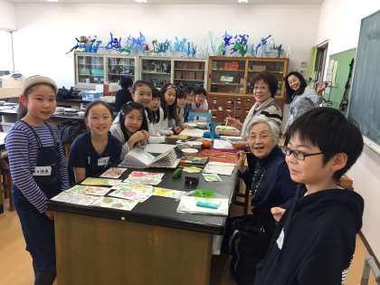 絵手紙教室は、3年生以上です。初めての絵手紙、上手く描けるかな。