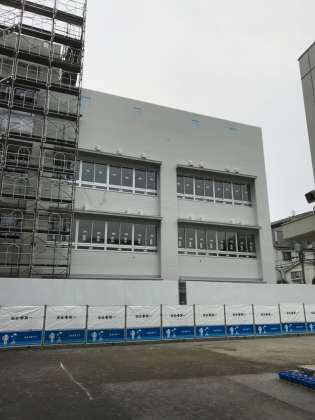 今週は仮設校舎側の足場を解体しています。今朝は水道道路寄りが姿を現しました。